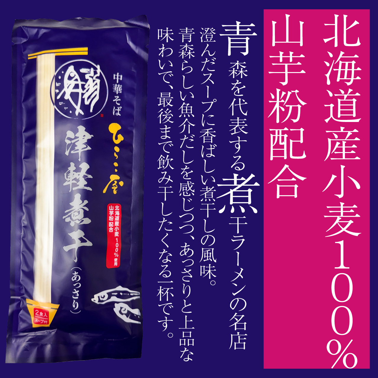 青森銘店の一杯 ひらこ屋津軽煮干し(あっさり) 2食入スープ付 ×2P